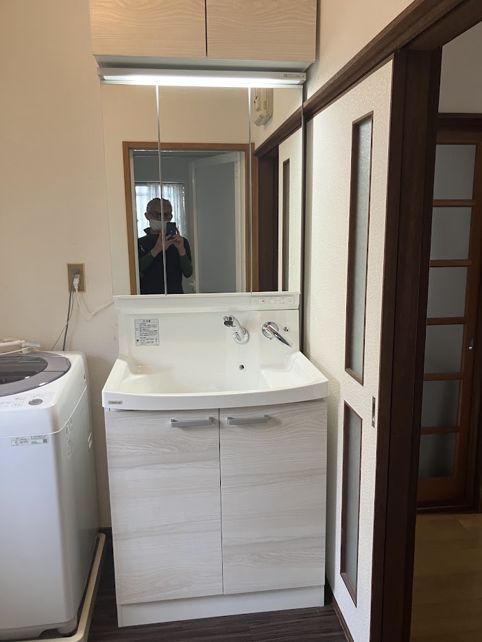 蛇口だけの交換もできそうなことをお伝えしましたが、折角なので洗面化粧台を交換したいとのこと